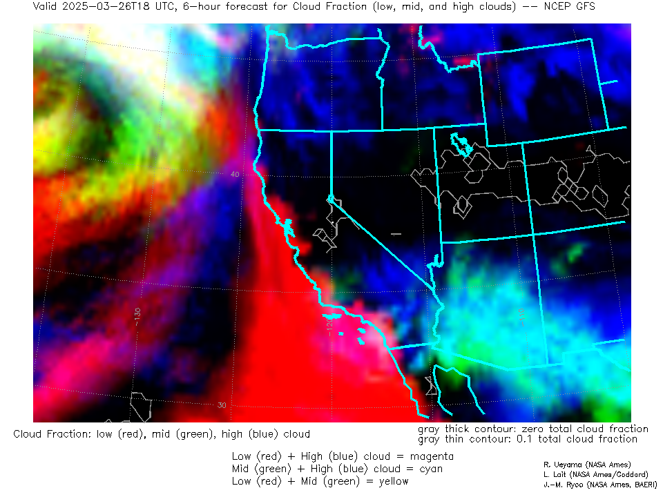 NCEP GFS Forecast Low-, Mid- and High-level Cloud Fraction