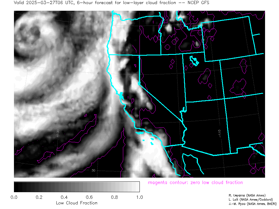 NCEP GFS Forecast Low-level Cloud Fraction