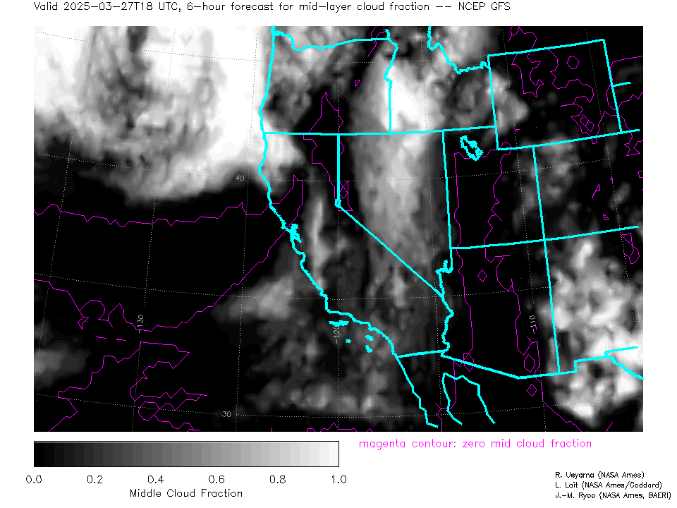 NCEP GFS Forecast Mid-level Cloud Fraction