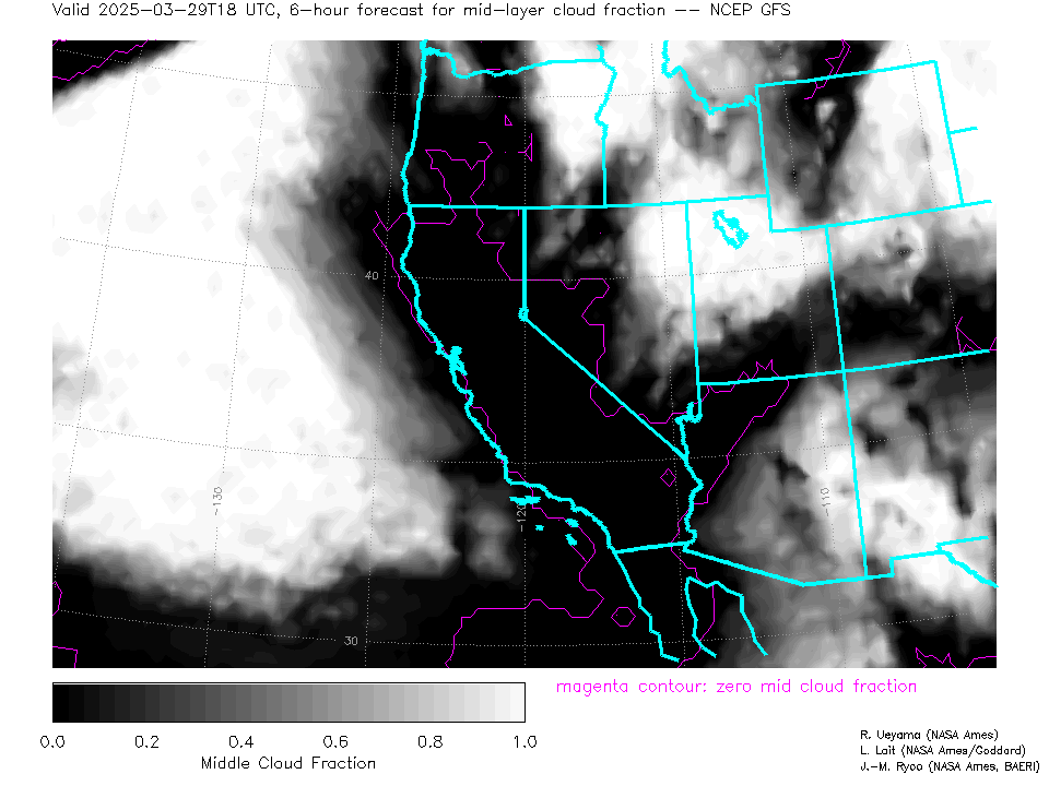 NCEP GFS Forecast Mid-level Cloud Fraction