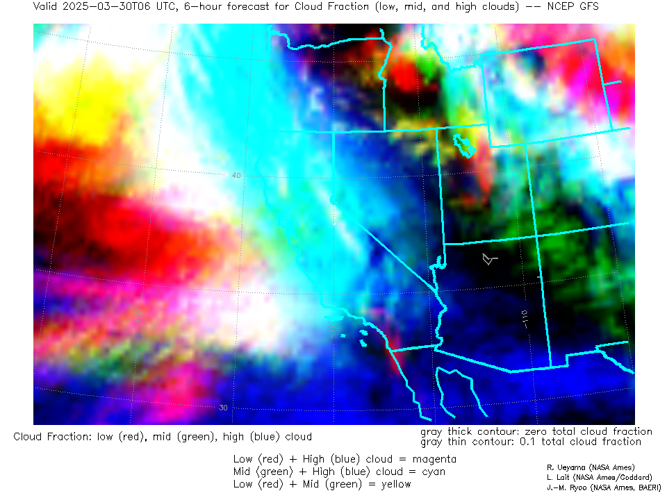 NCEP GFS Forecast Low-, Mid- and High-level Cloud Fraction