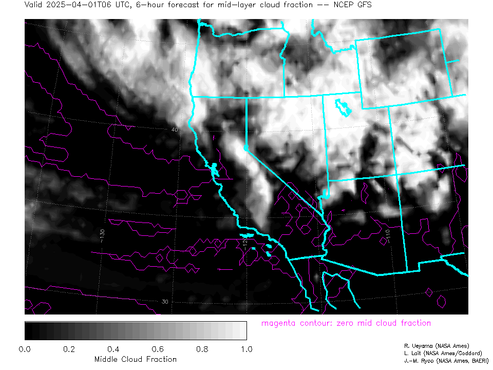 NCEP GFS Forecast Mid-level Cloud Fraction