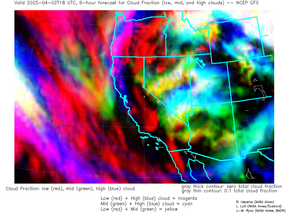NCEP GFS Forecast Low-, Mid- and High-level Cloud Fraction