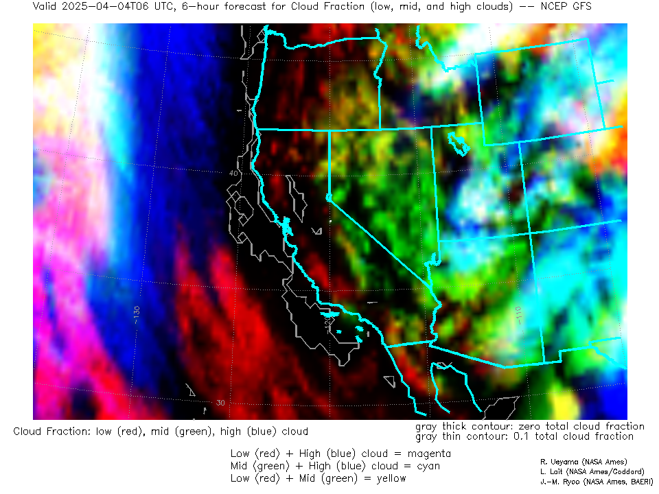 NCEP GFS Forecast Low-, Mid- and High-level Cloud Fraction