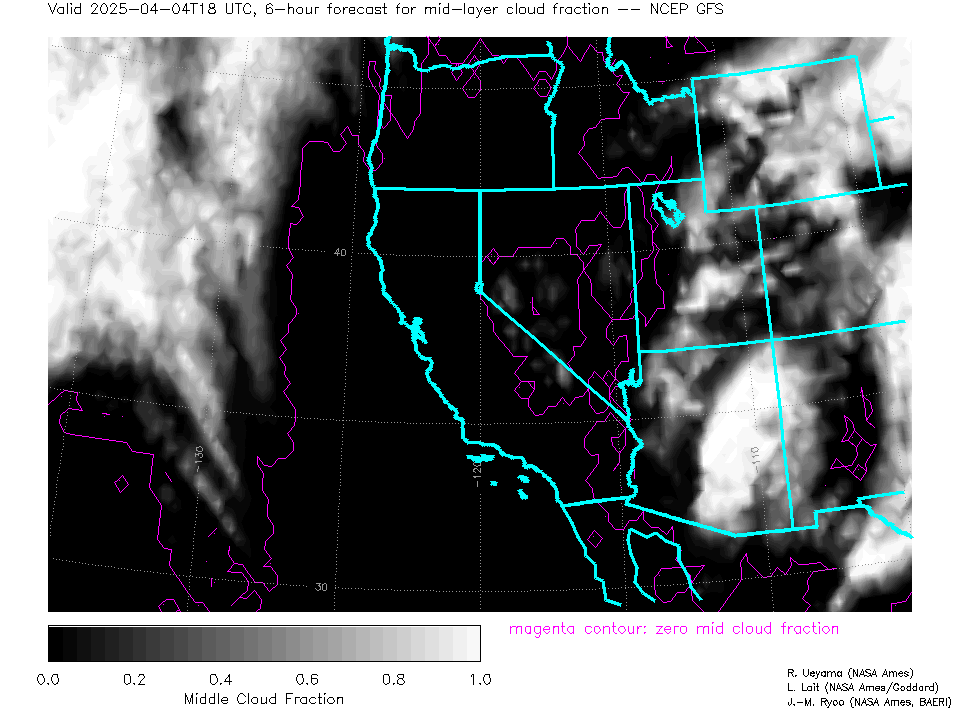 NCEP GFS Forecast Mid-level Cloud Fraction
