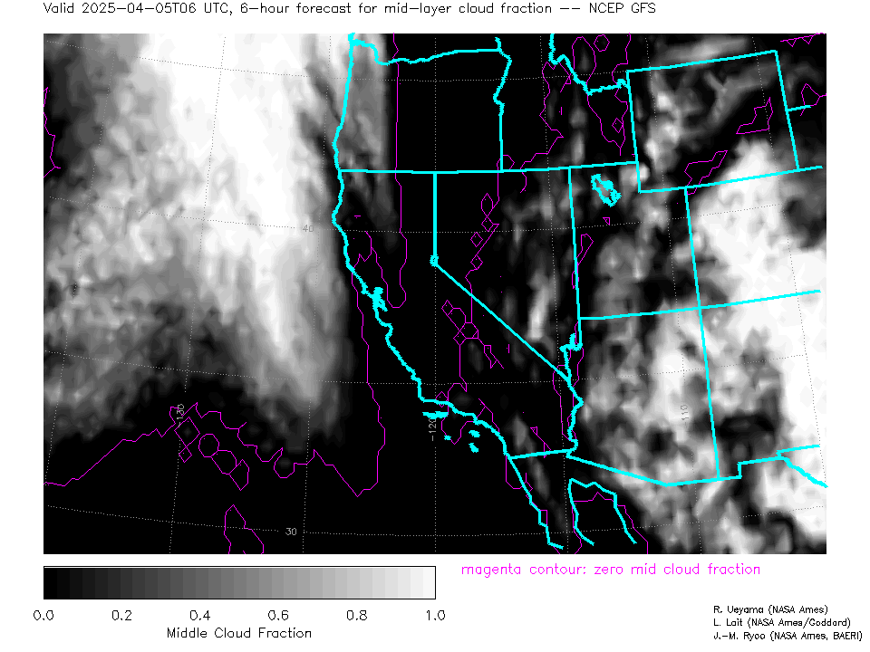 NCEP GFS Forecast Mid-level Cloud Fraction