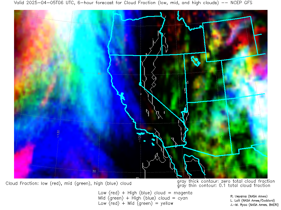 NCEP GFS Forecast Low-, Mid- and High-level Cloud Fraction