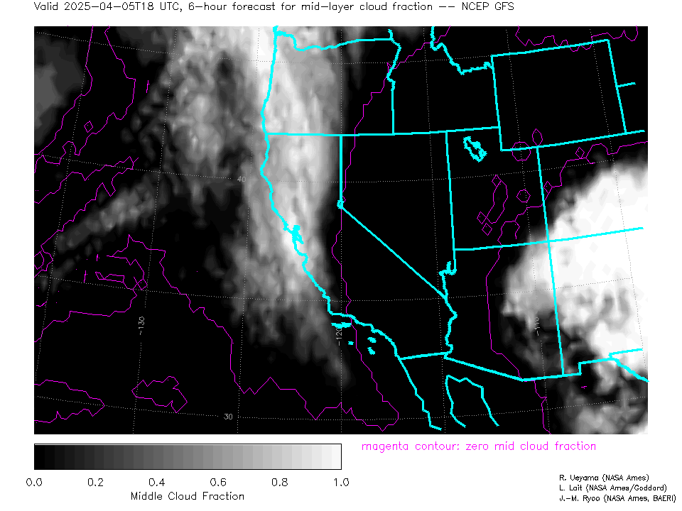 NCEP GFS Forecast Mid-level Cloud Fraction