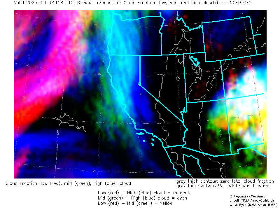 NCEP GFS Forecast Low-, Mid- and High-level Cloud Fraction