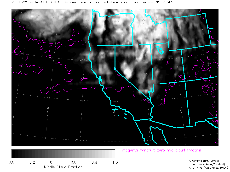 NCEP GFS Forecast Mid-level Cloud Fraction