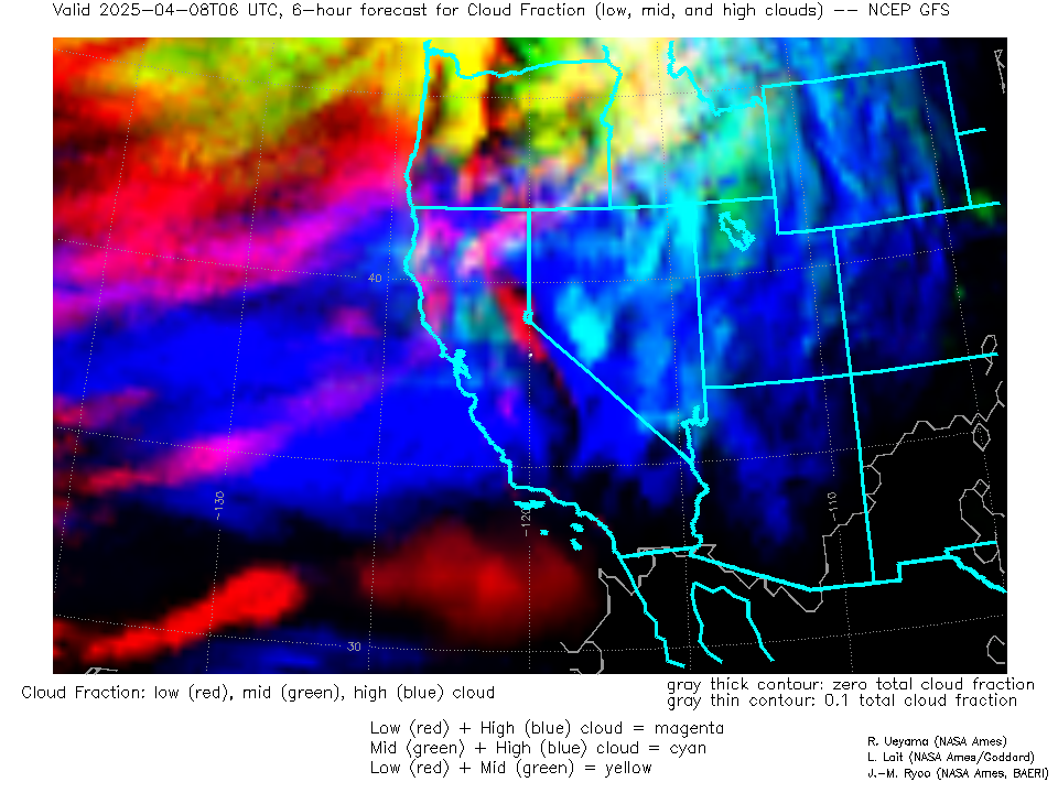 NCEP GFS Forecast Low-, Mid- and High-level Cloud Fraction