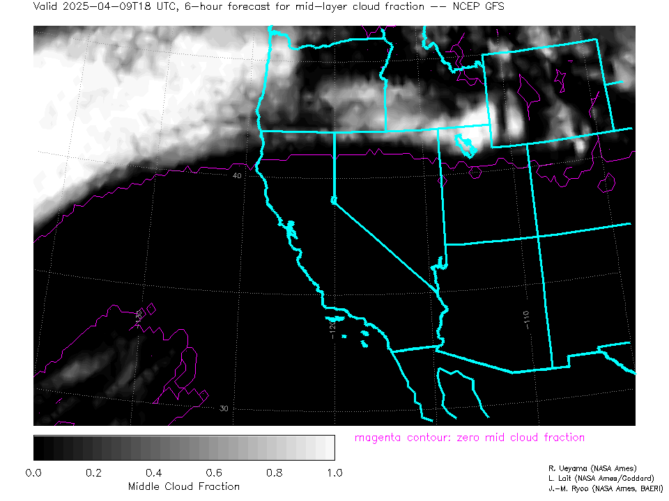 NCEP GFS Forecast Mid-level Cloud Fraction