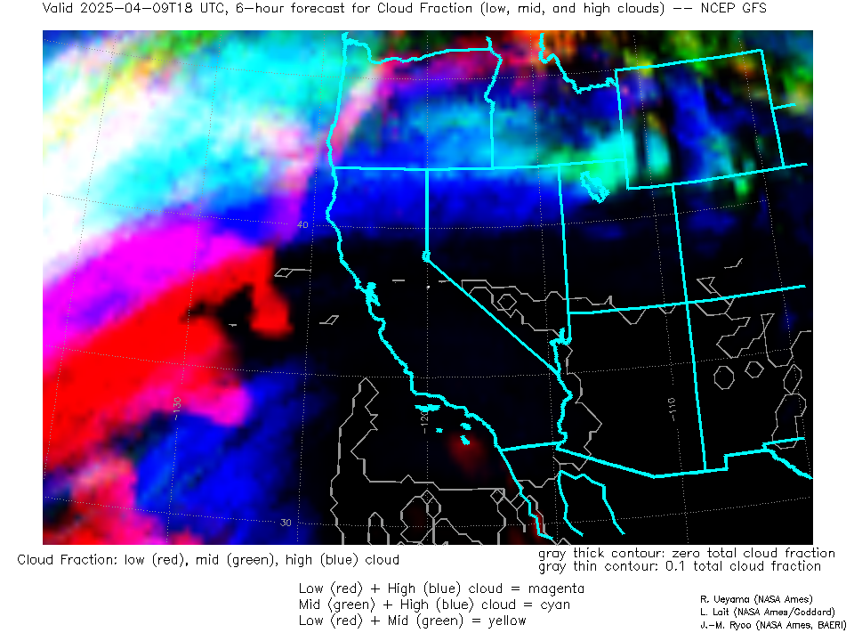 NCEP GFS Forecast Low-, Mid- and High-level Cloud Fraction