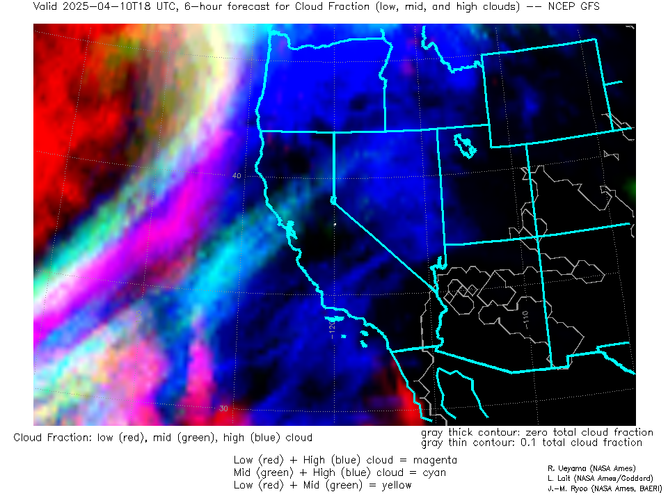 NCEP GFS Forecast Low-, Mid- and High-level Cloud Fraction