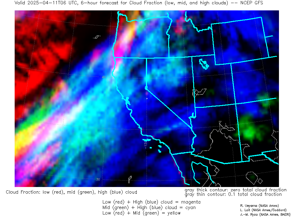NCEP GFS Forecast Low-, Mid- and High-level Cloud Fraction