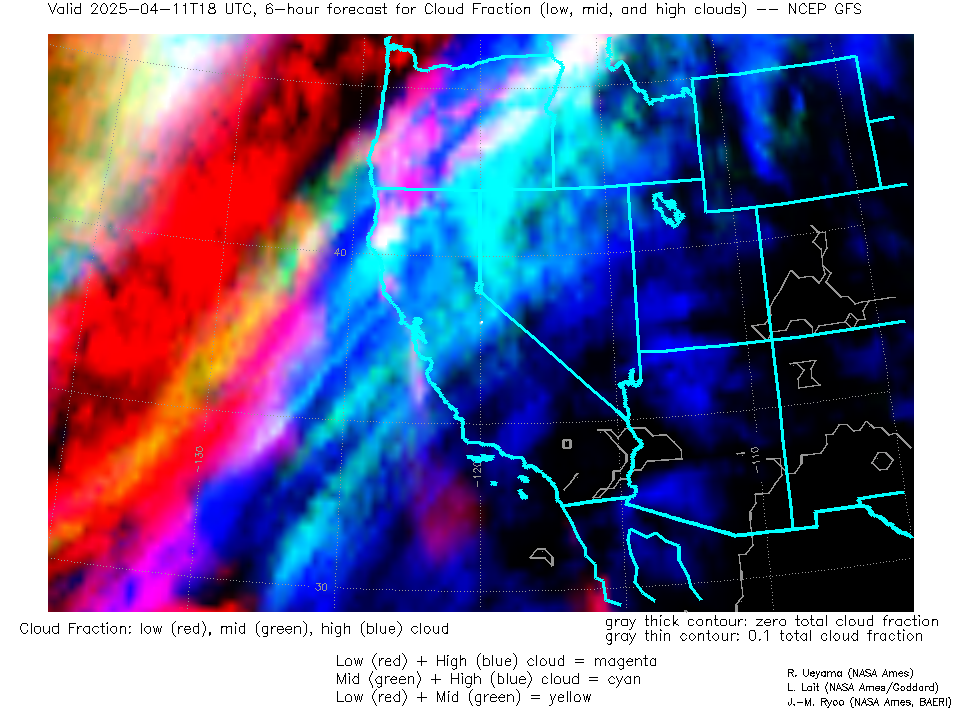 NCEP GFS Forecast Low-, Mid- and High-level Cloud Fraction