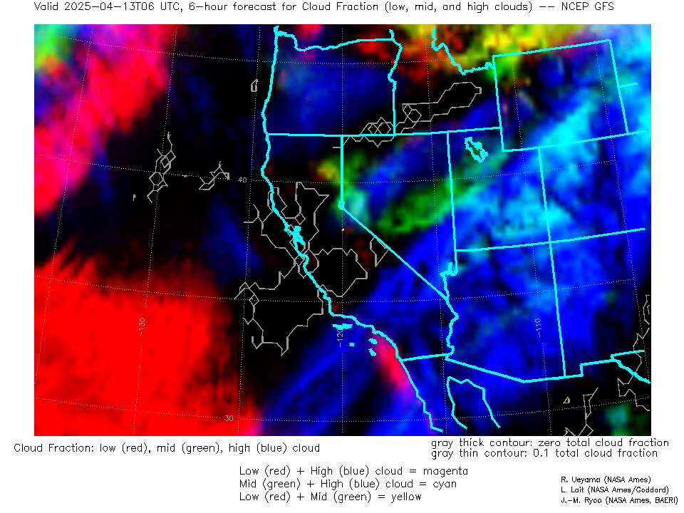 NCEP GFS Forecast Low-, Mid- and High-level Cloud Fraction