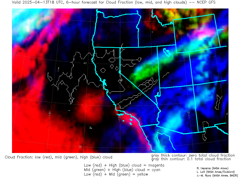 NCEP GFS Forecast Low-, Mid- and High-level Cloud Fraction