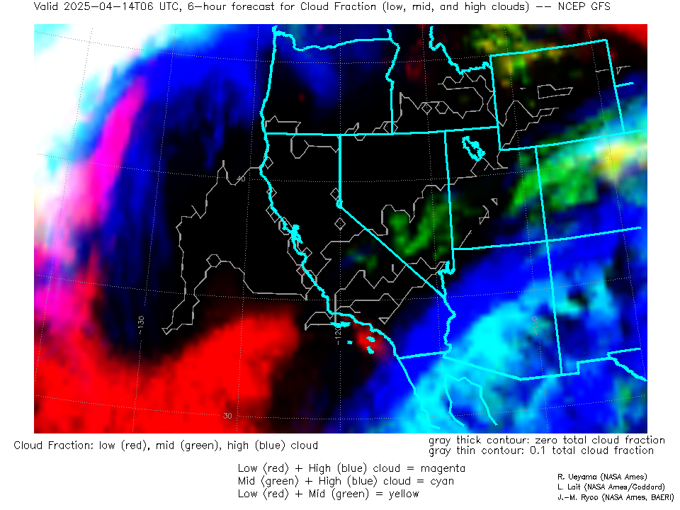 NCEP GFS Forecast Low-, Mid- and High-level Cloud Fraction