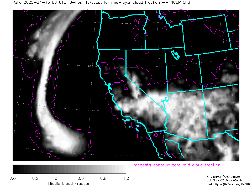 NCEP GFS Forecast Mid-level Cloud Fraction