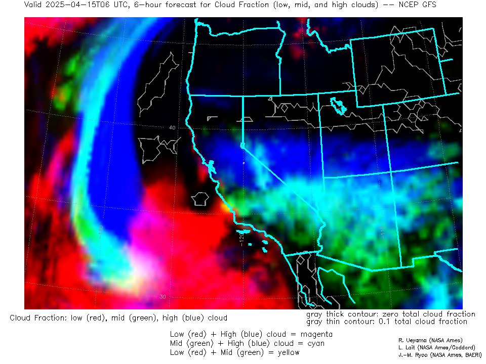 NCEP GFS Forecast Low-, Mid- and High-level Cloud Fraction