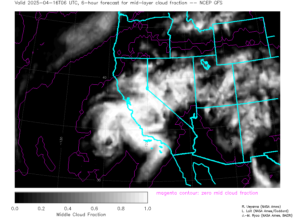 NCEP GFS Forecast Mid-level Cloud Fraction