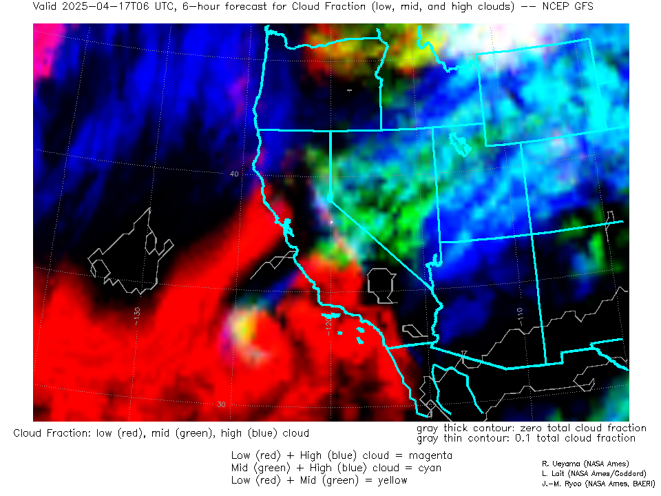 NCEP GFS Forecast Low-, Mid- and High-level Cloud Fraction
