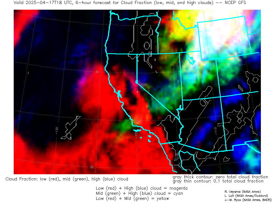 NCEP GFS Forecast Low-, Mid- and High-level Cloud Fraction