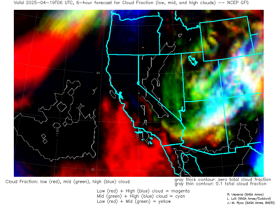 NCEP GFS Forecast Low-, Mid- and High-level Cloud Fraction