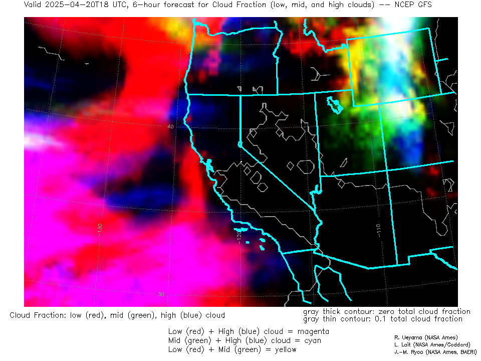 NCEP GFS Forecast Low-, Mid- and High-level Cloud Fraction