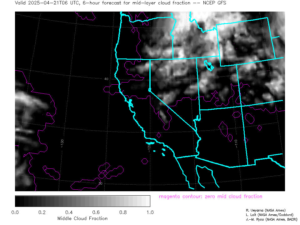 NCEP GFS Forecast Mid-level Cloud Fraction