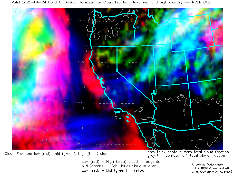 NCEP GFS Forecast Low-, Mid- and High-level Cloud Fraction