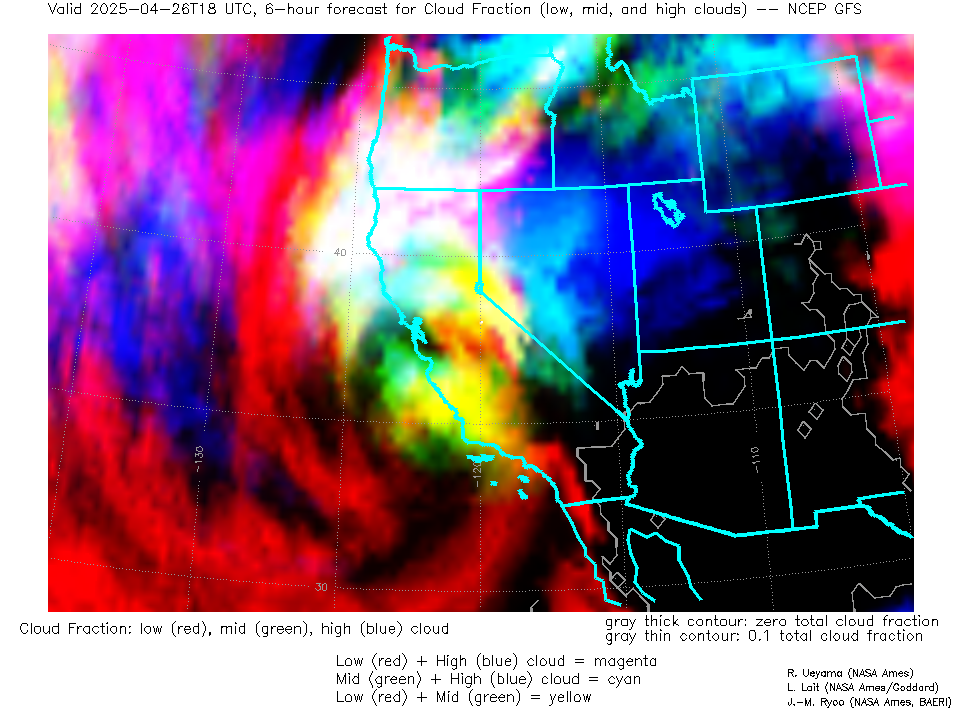 NCEP GFS Forecast Low-, Mid- and High-level Cloud Fraction