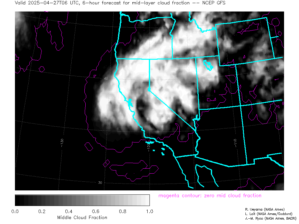NCEP GFS Forecast Mid-level Cloud Fraction