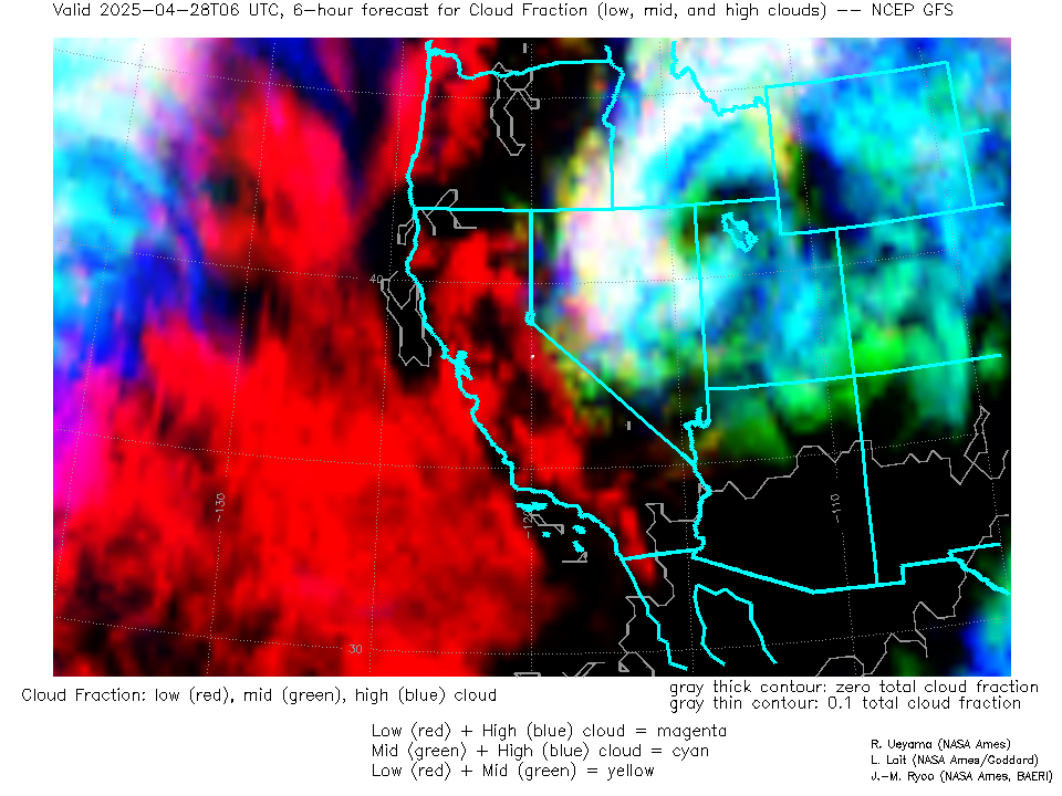 NCEP GFS Forecast Low-, Mid- and High-level Cloud Fraction