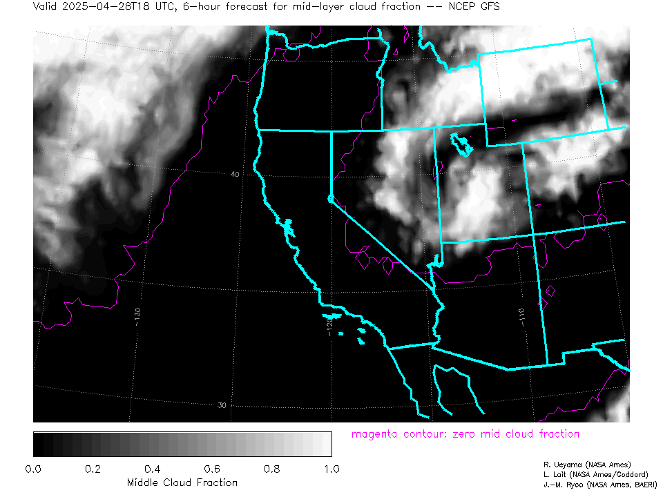 NCEP GFS Forecast Mid-level Cloud Fraction
