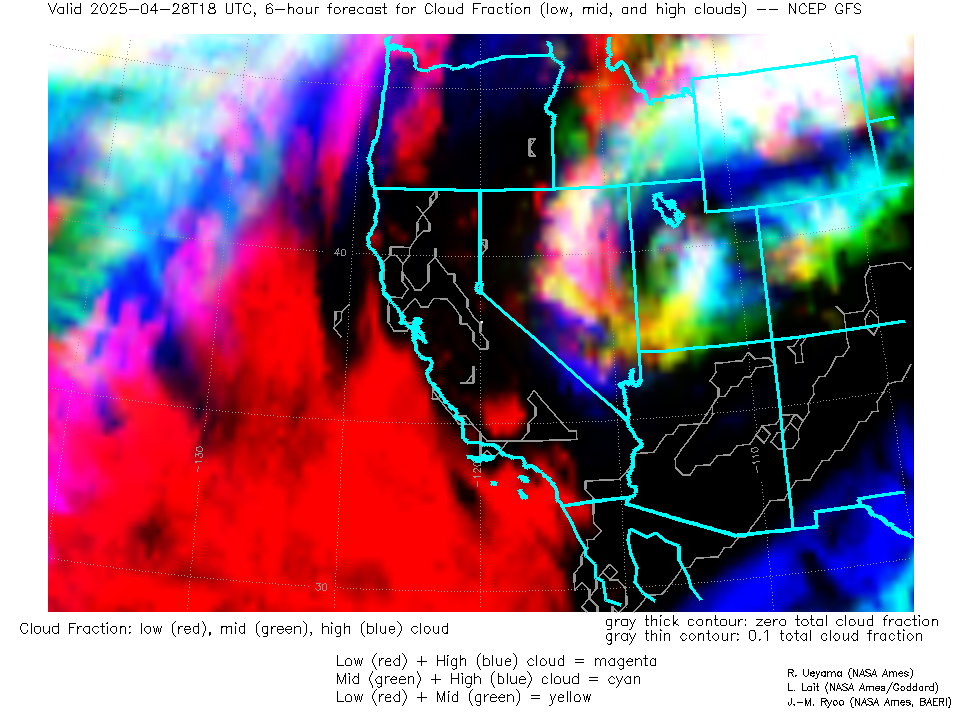 NCEP GFS Forecast Low-, Mid- and High-level Cloud Fraction