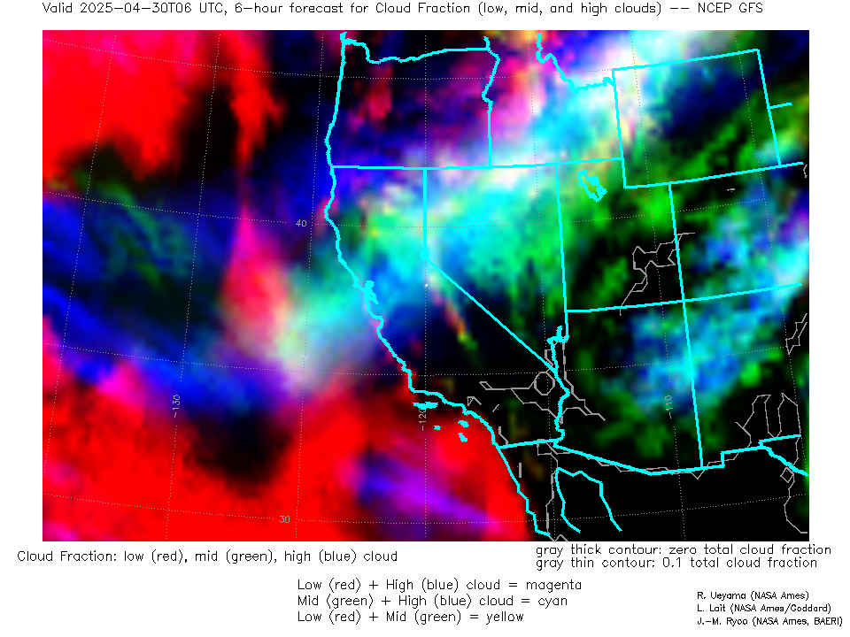 NCEP GFS Forecast Low-, Mid- and High-level Cloud Fraction