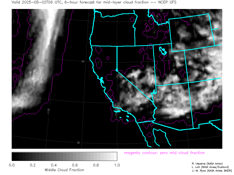 NCEP GFS Forecast Mid-level Cloud Fraction