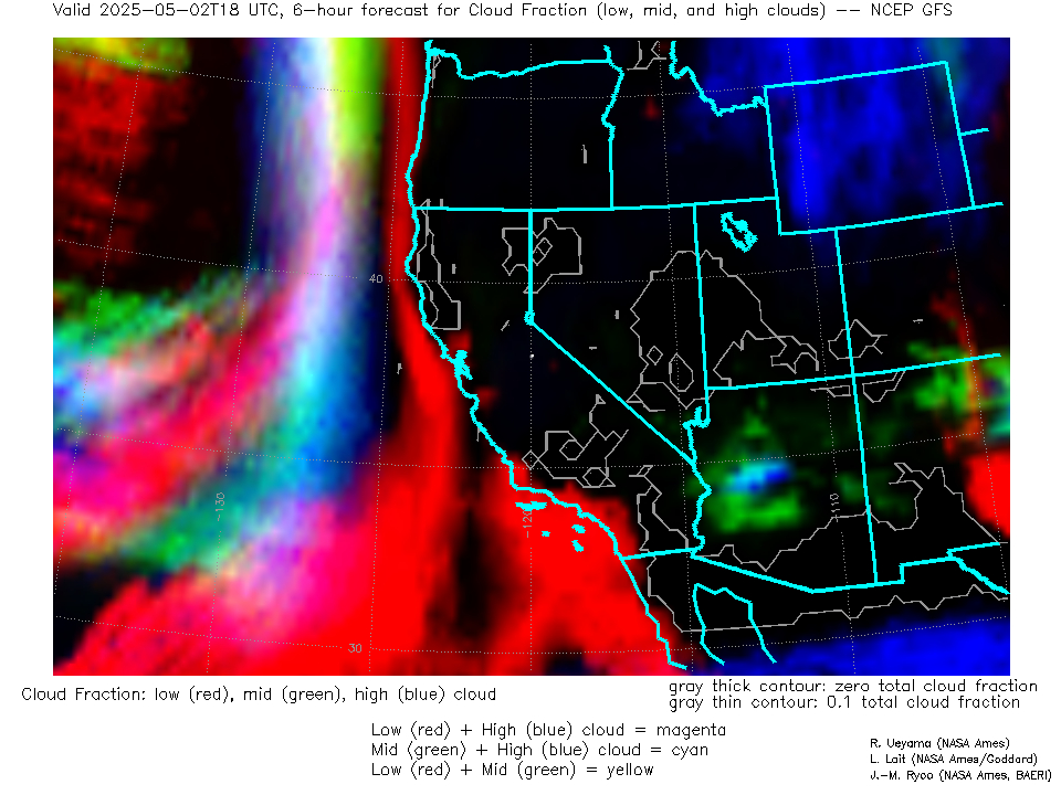 NCEP GFS Forecast Low-, Mid- and High-level Cloud Fraction