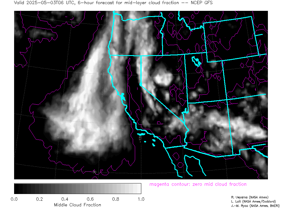 NCEP GFS Forecast Mid-level Cloud Fraction