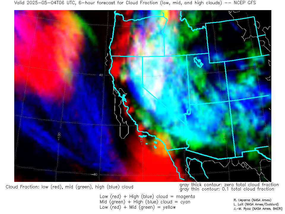 NCEP GFS Forecast Low-, Mid- and High-level Cloud Fraction
