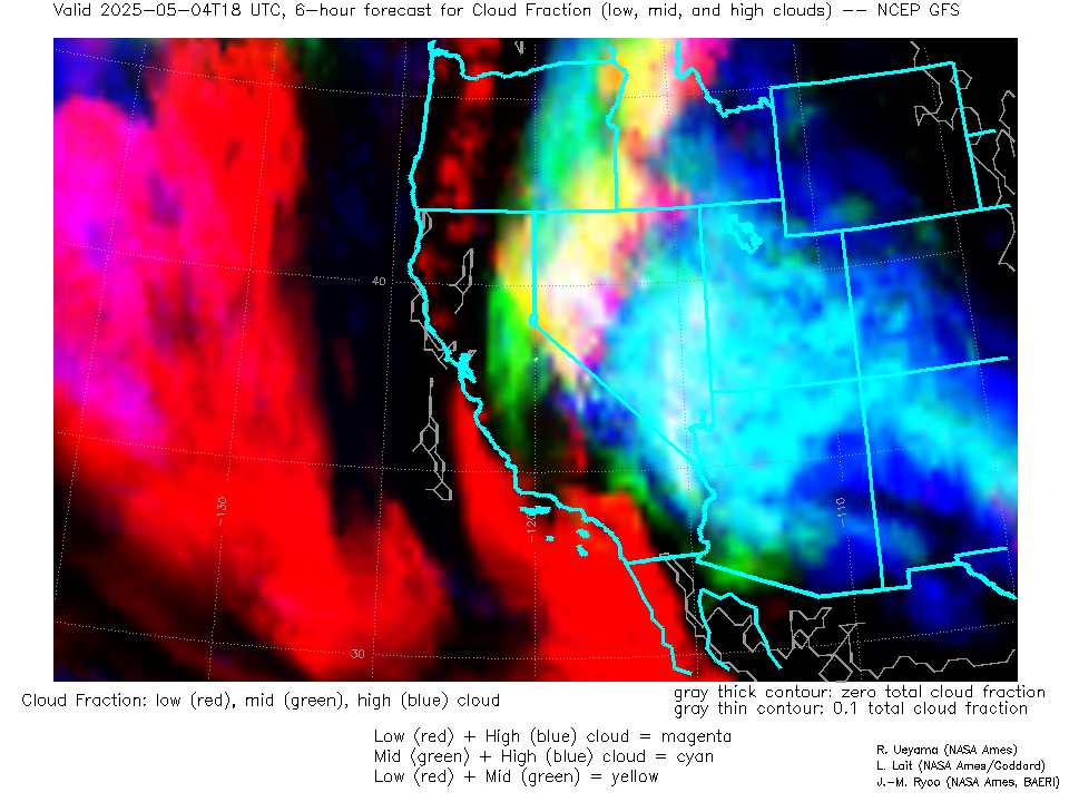 NCEP GFS Forecast Low-, Mid- and High-level Cloud Fraction