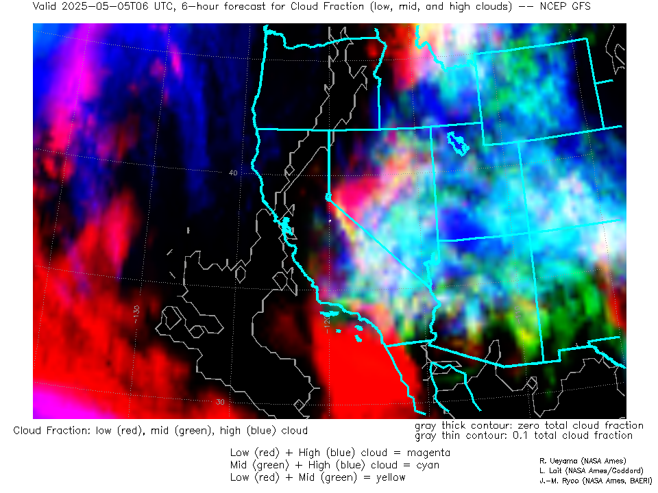 NCEP GFS Forecast Low-, Mid- and High-level Cloud Fraction
