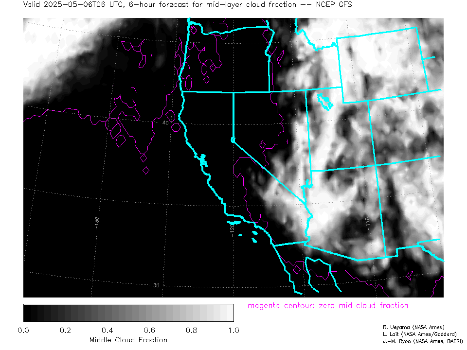 NCEP GFS Forecast Mid-level Cloud Fraction