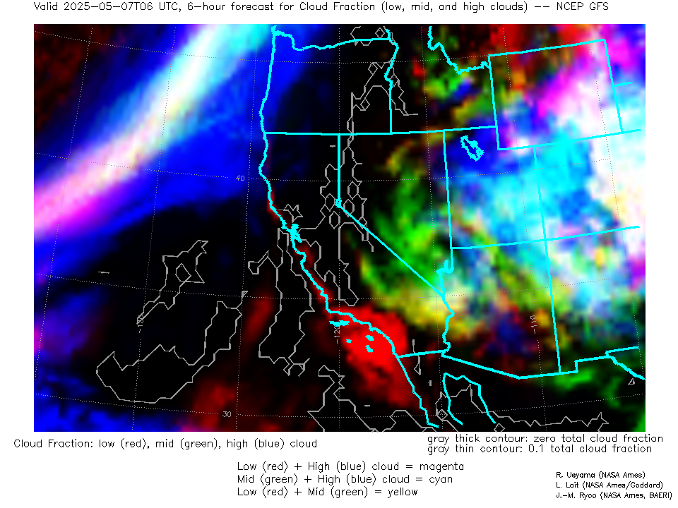 NCEP GFS Forecast Low-, Mid- and High-level Cloud Fraction