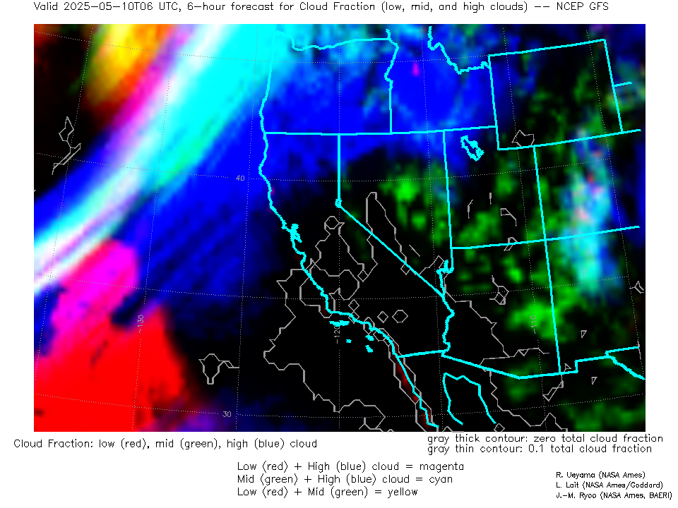 NCEP GFS Forecast Low-, Mid- and High-level Cloud Fraction