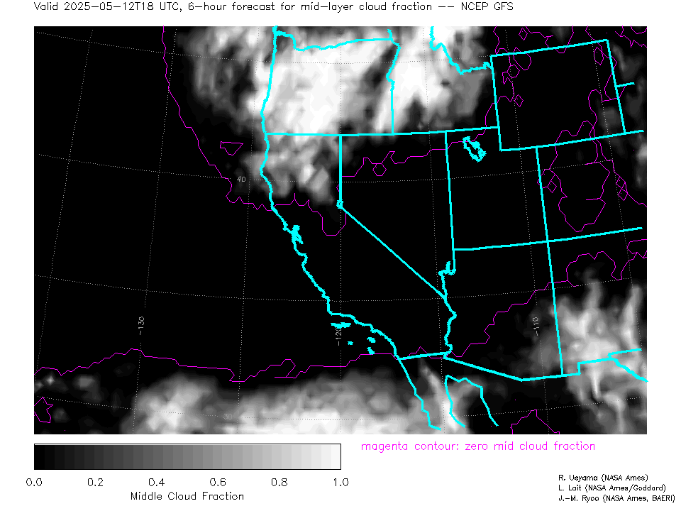 NCEP GFS Forecast Mid-level Cloud Fraction