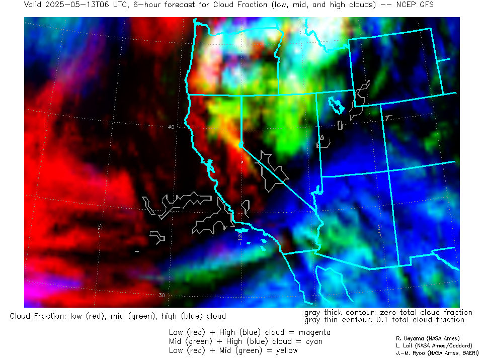 NCEP GFS Forecast Low-, Mid- and High-level Cloud Fraction