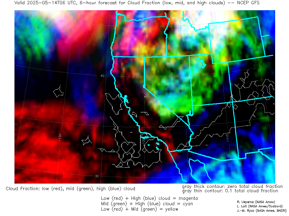 NCEP GFS Forecast Low-, Mid- and High-level Cloud Fraction